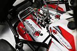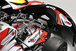 Magnesium wheels, exhaust rack, front and rear torsion bars, aluminium pedals |