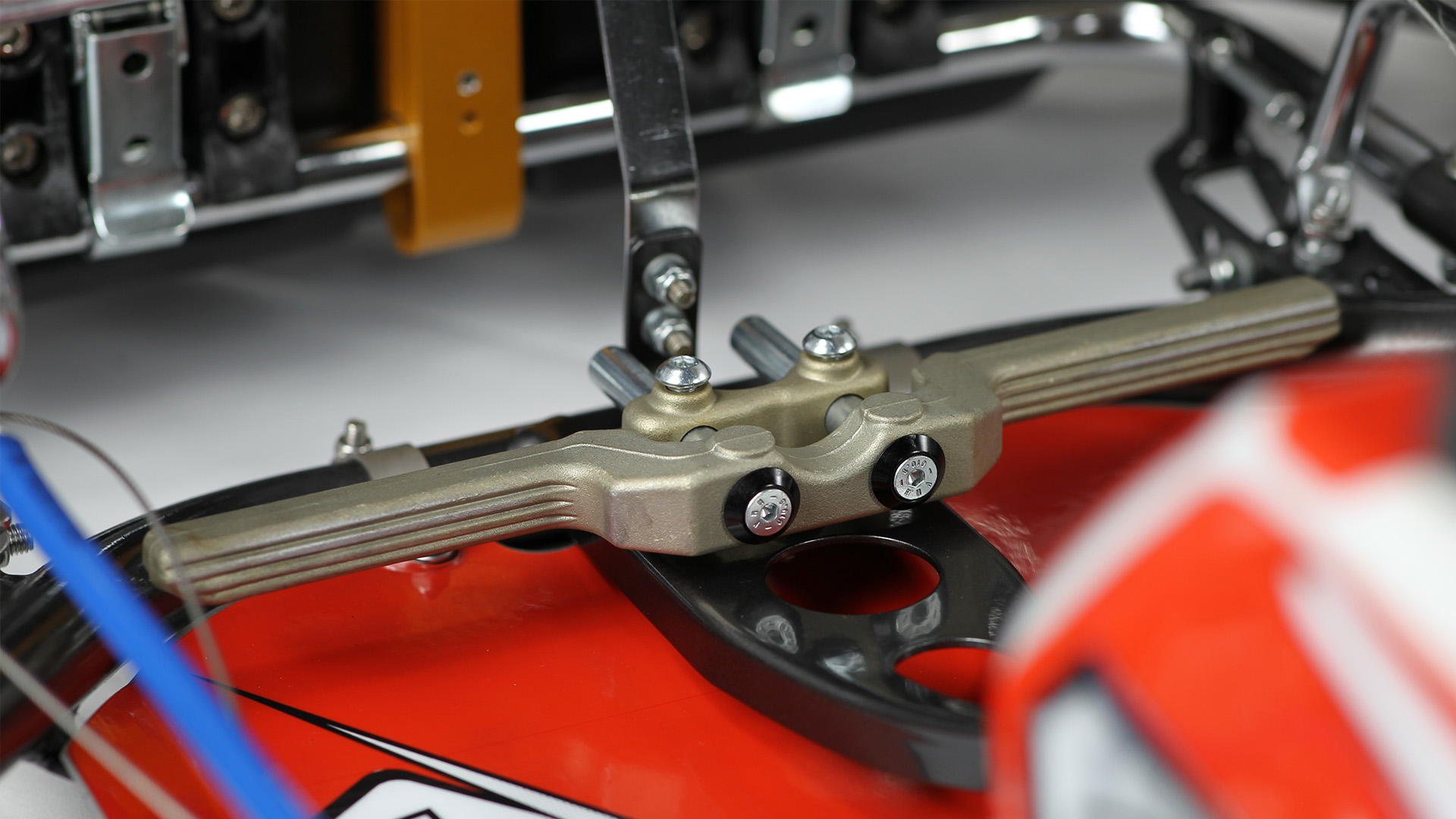 Magnesium wheels, exhaust rack, front and rear torsion bars, aluminium pedals |